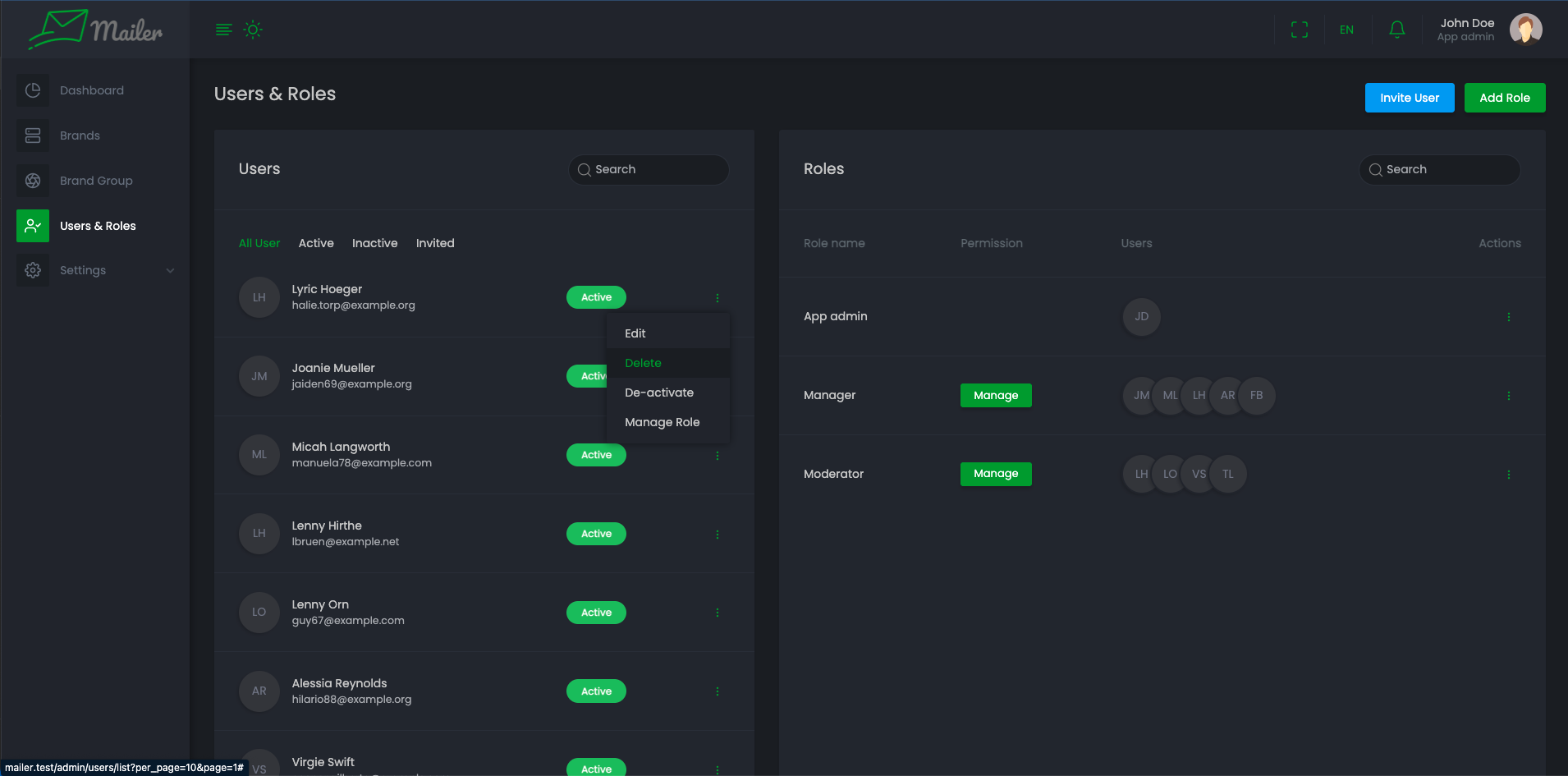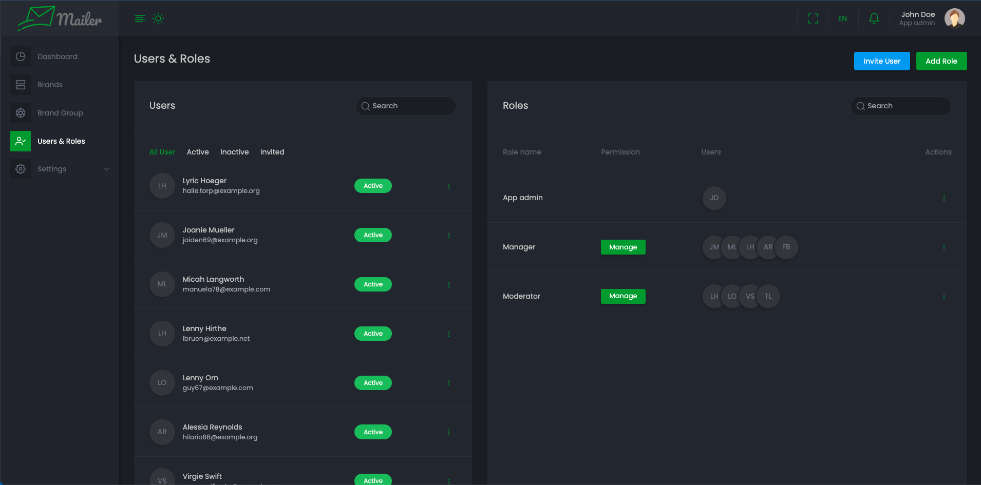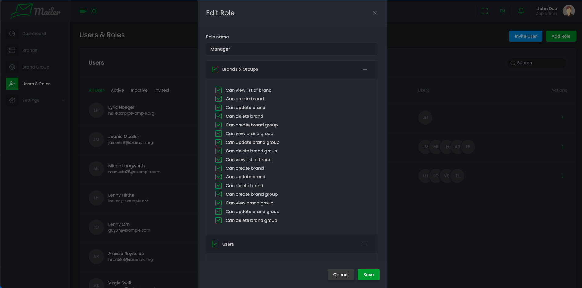 Users and Roles is an important feature in any application. You may need different roles for different brands. For that you have to create roles as you required and gives them permission to access.