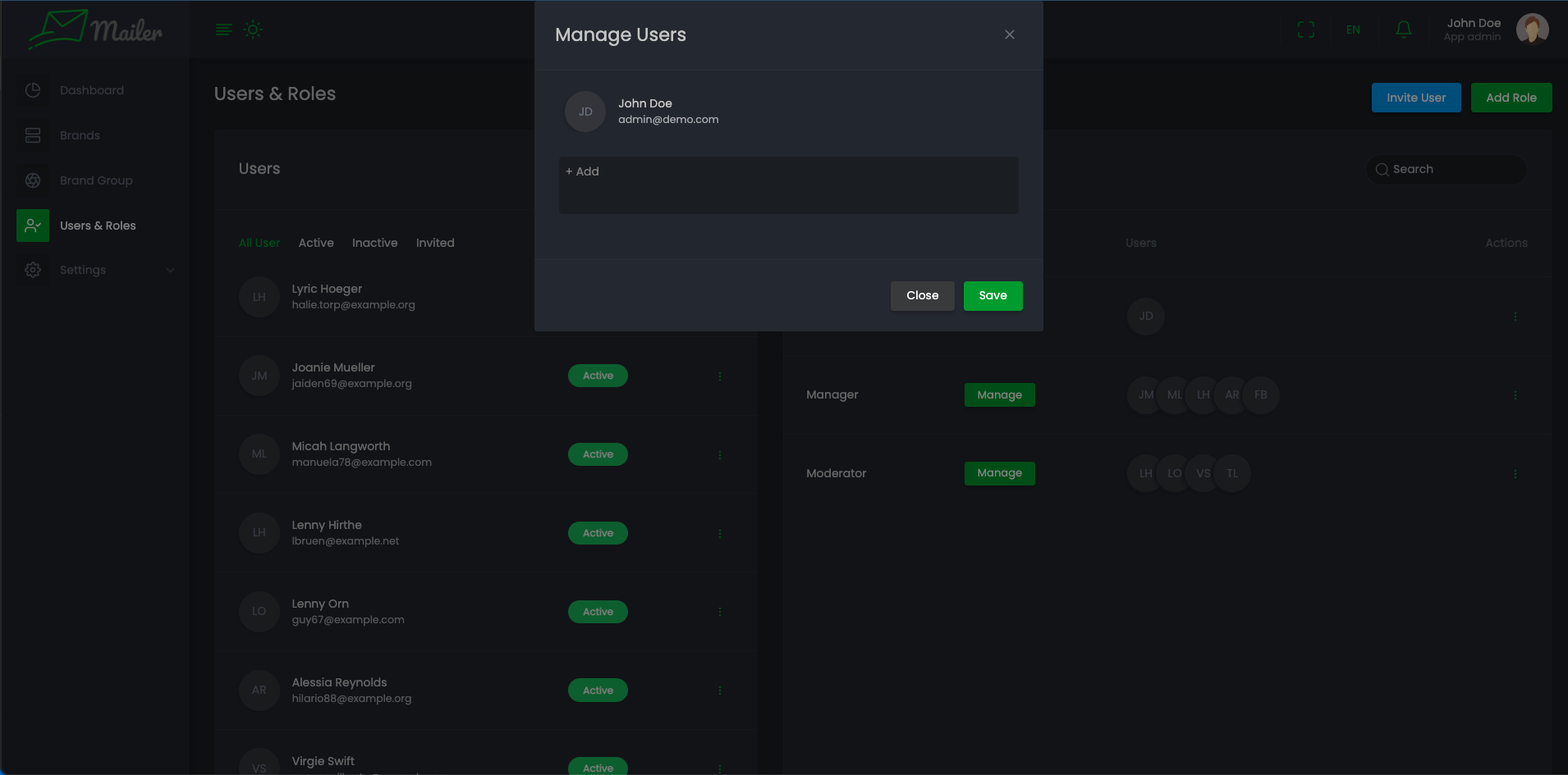 Go to Users & Roles.(User and roles are also available for a specific brand)