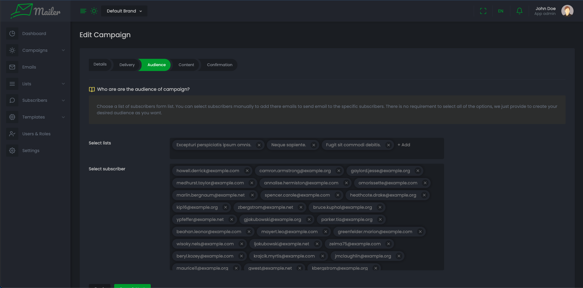 Fill audiences. Select subscribers, Lists And then click "Save and next".