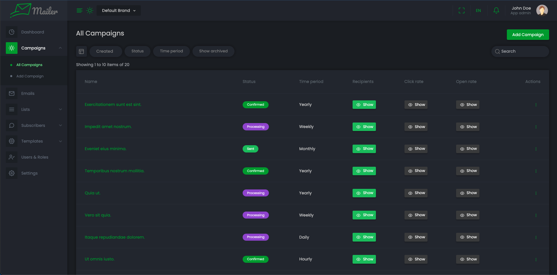 You can see list of campaigns. You can filter campaigns through created date, status.