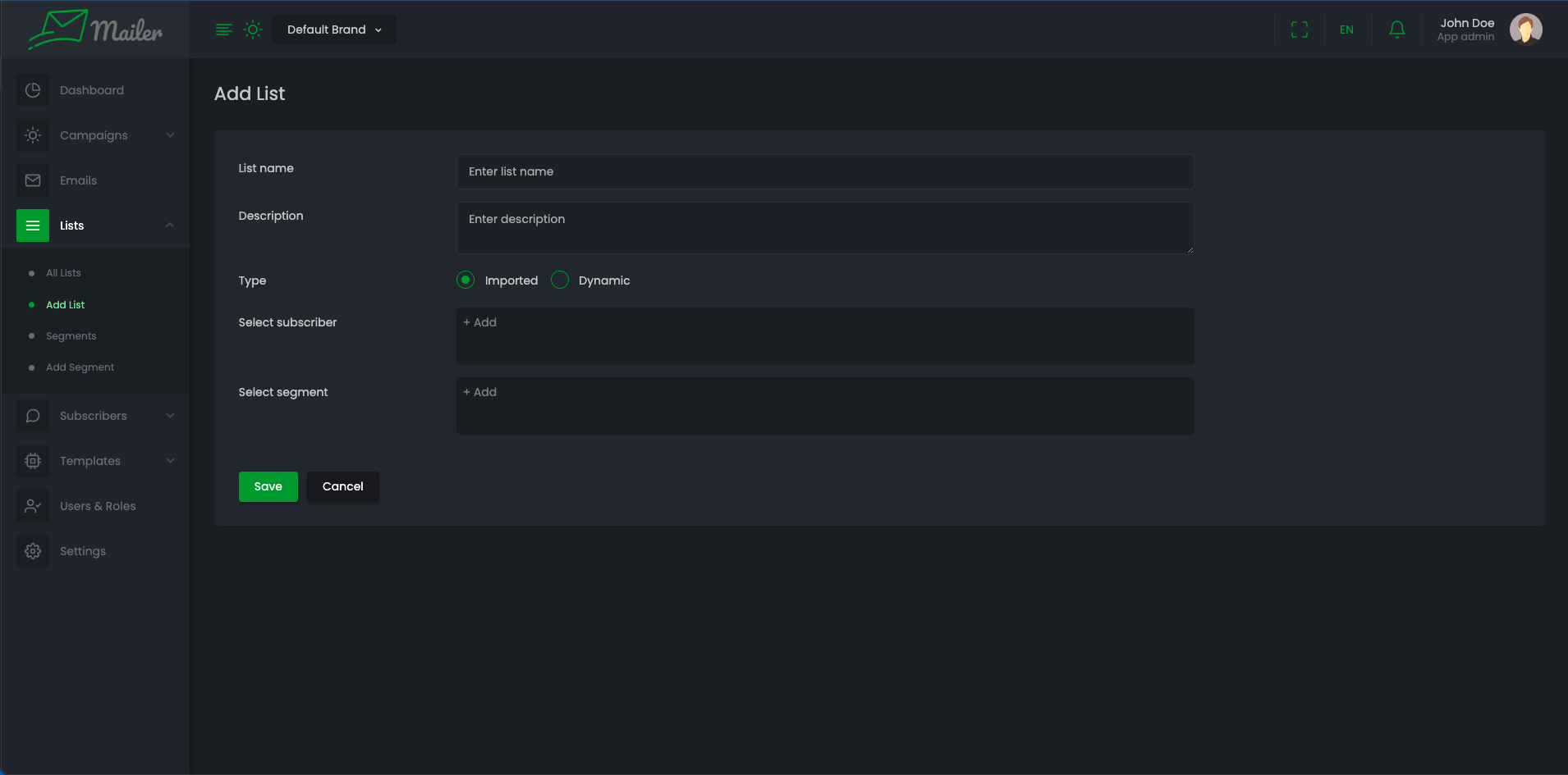Go to "List" > "Add List". You can create a new list. You must have to select segment or subscriber.