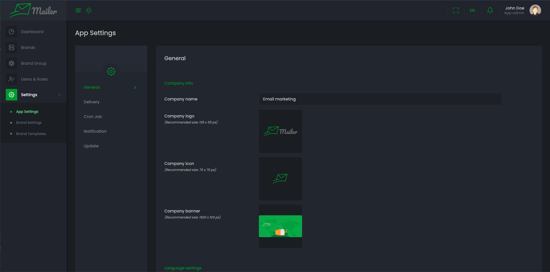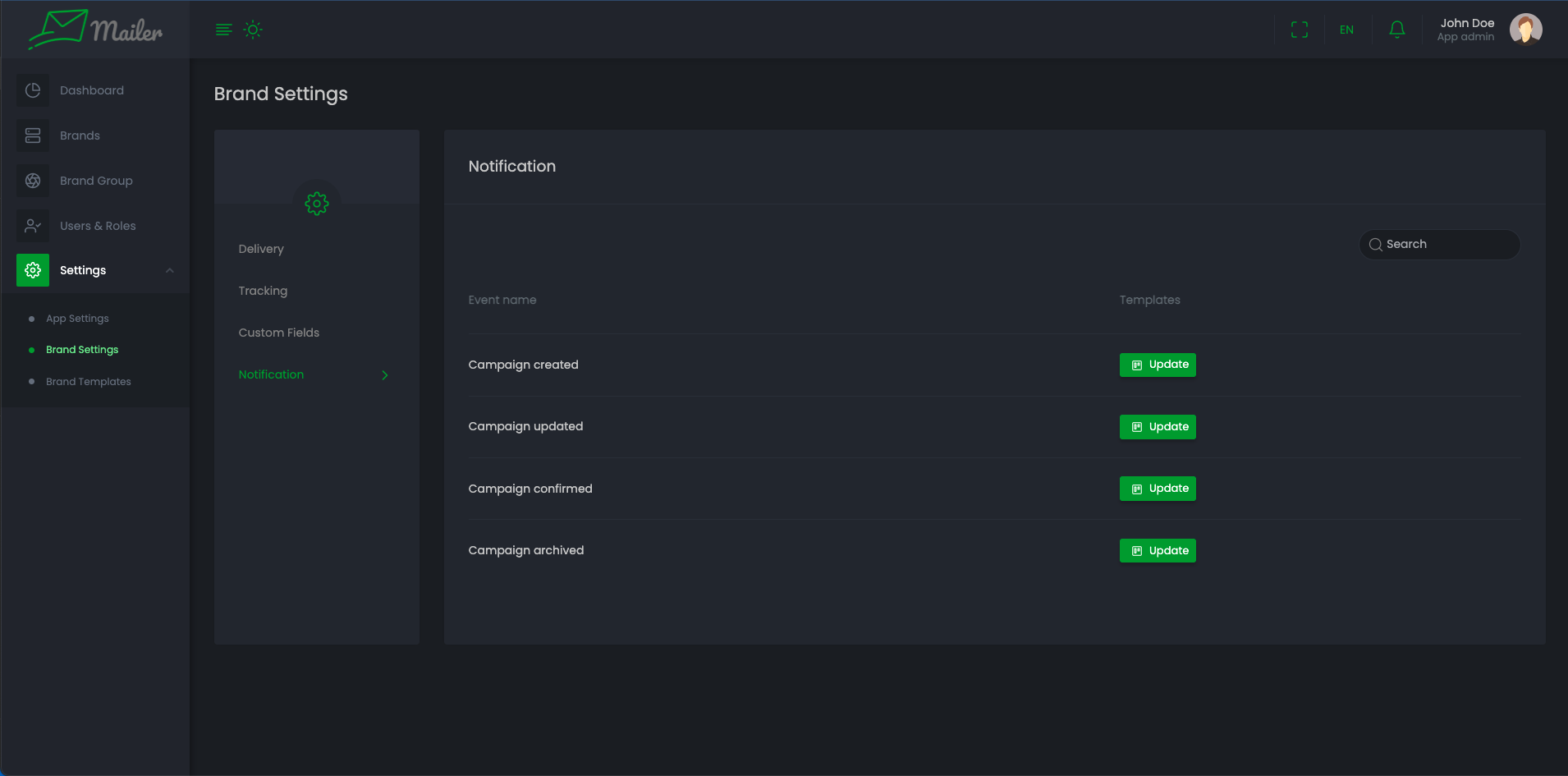 Go to "Settings" > "App Settings" / "Brand Setting" > "Notification"
